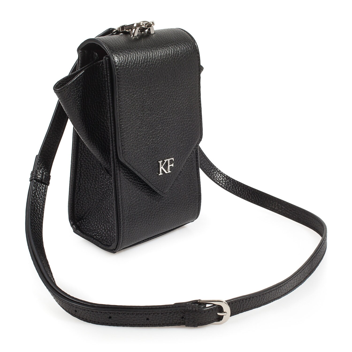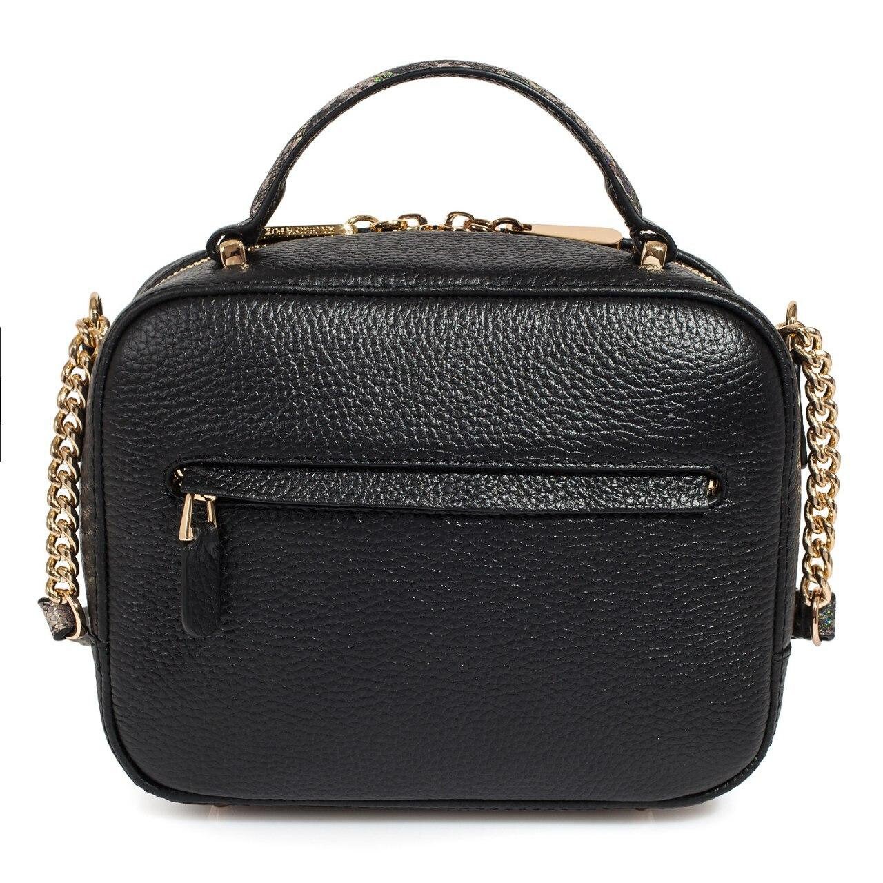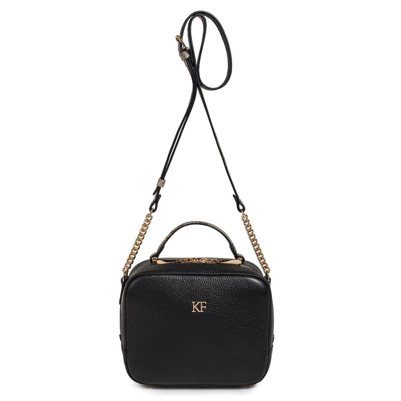 Black genuine leather woman shoulder bag from ukrainian designer Katerina Fox. Fashionable and elegant modern bag KF for bright girls and women. This bag is able to attract attention and highlight your exquisite taste. The internal space of a bag is equipped with one spacious compartment and one zipper pocket. The bag is closed with a zipper. The length of the strap is adjustable. The kit also includes a storage bag.