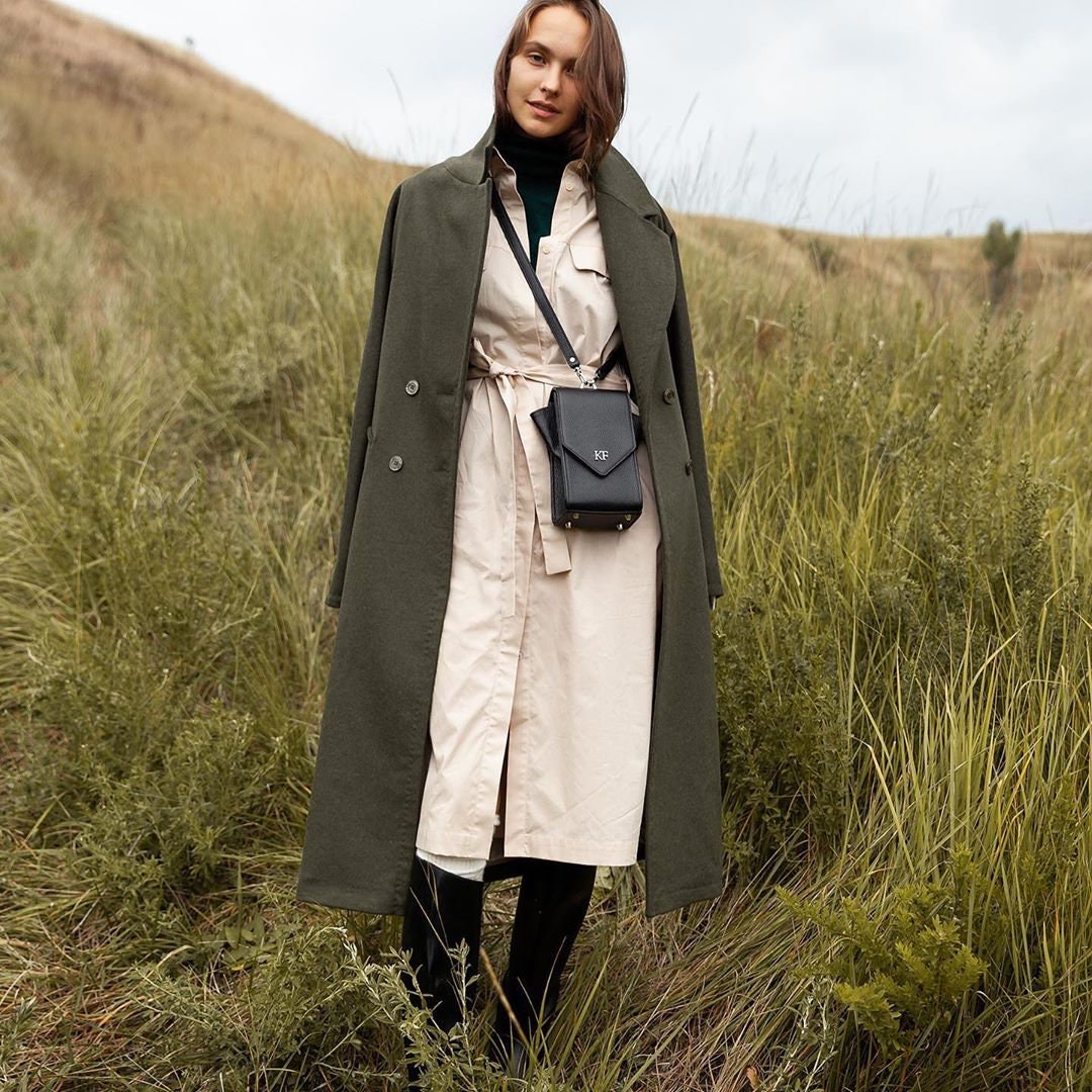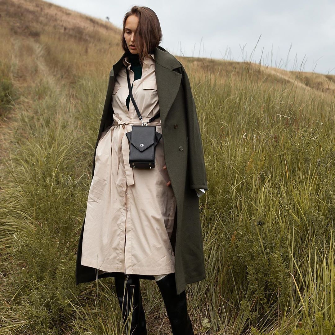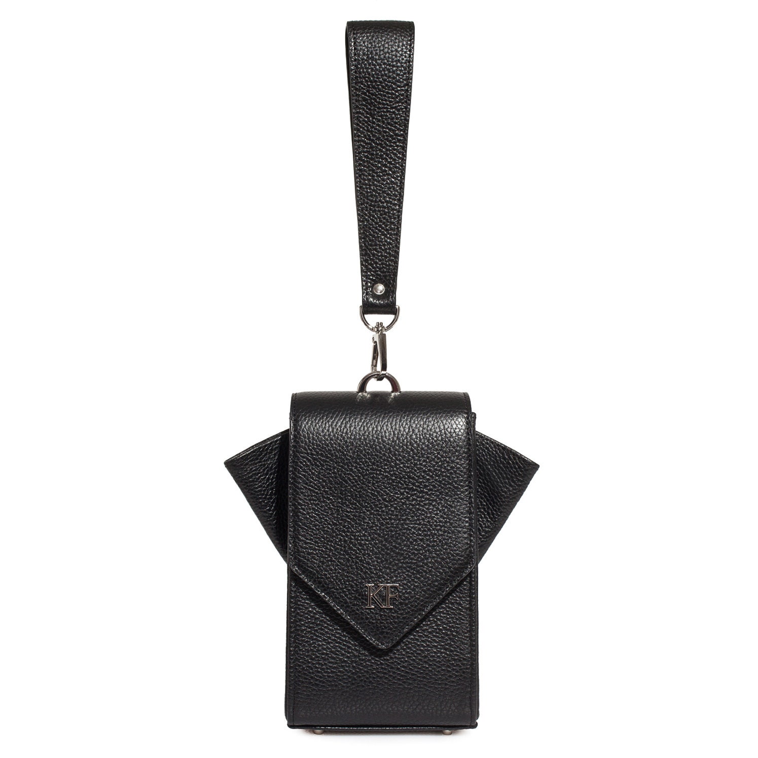 Black genuine leather woman crossbody bag from ukrainian designer Katerina Fox. Fashionable and elegant modern bag KF for bright girls and women. This bag is able to attract attention and highlight your exquisite taste. All accessories for Katerina Fox bags makes the same factory as for Michael §¬ors, Calvin Klein, DKNY and other famous brands.The internal space of a bag is equipped with one spacious compartment, four patch pockets for cards. The bag is closed on the button-magnet. The bag has a short removable handle on wrist.The length of the strap is adjustable. The kit also includes a storage bag.