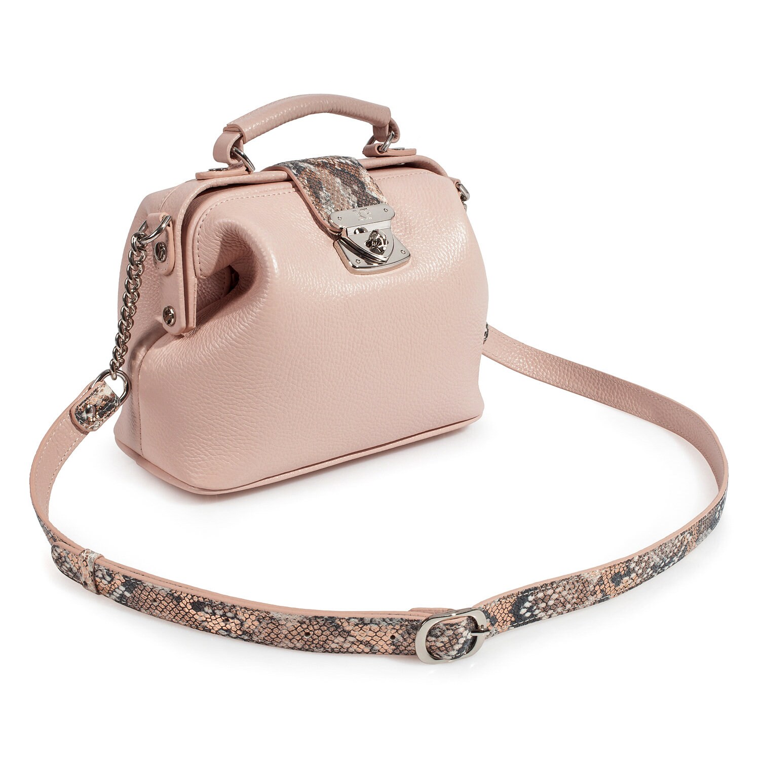 Beige (nude) genuine leather handbag from ukrainian designer Katerina Fox. This model is designed for women who appreciate the sleek design combined with functionality and comfort. High-quality and reliable hardware ensure long service bags. The internal space of a bag is equipped with one spacious compartment and two patch-pockets and one zipper pocket. The bag is closed with a clasp. The bottom of the bag is protected with metal legs. There is a long handle that allows you to wear the bag on the shoulder. The kit also includes a storage bag.