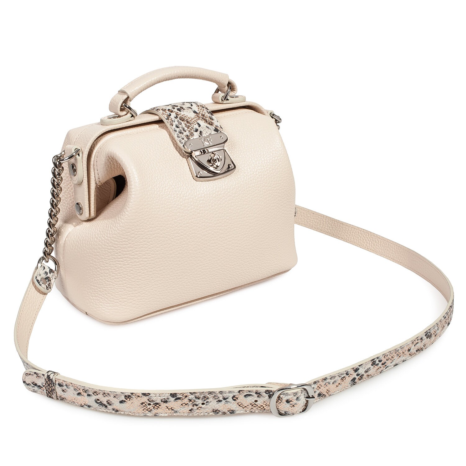 Leather doctor bag for women, Light beige Leather Shoulder Bag, Women's Leather doctor bag, Leather bag KF-4178