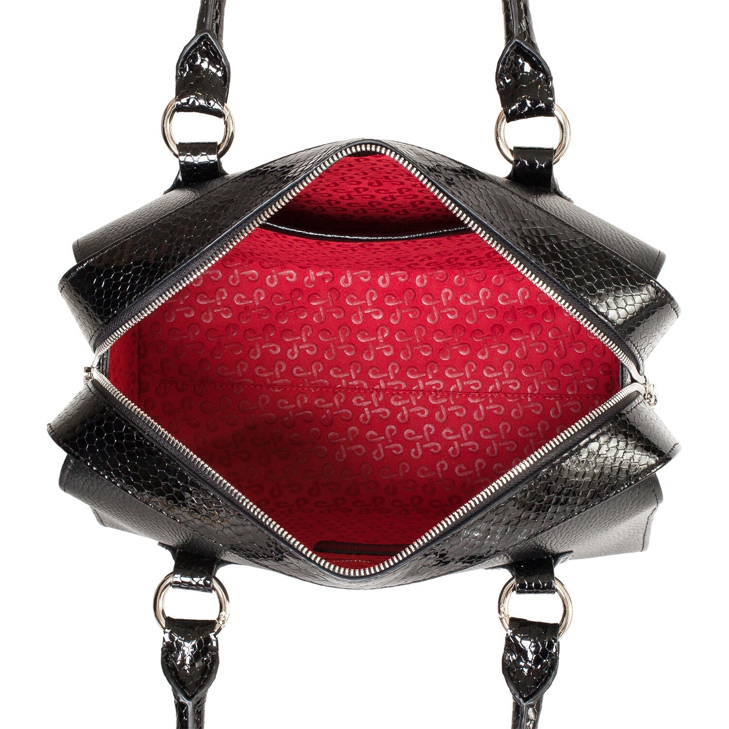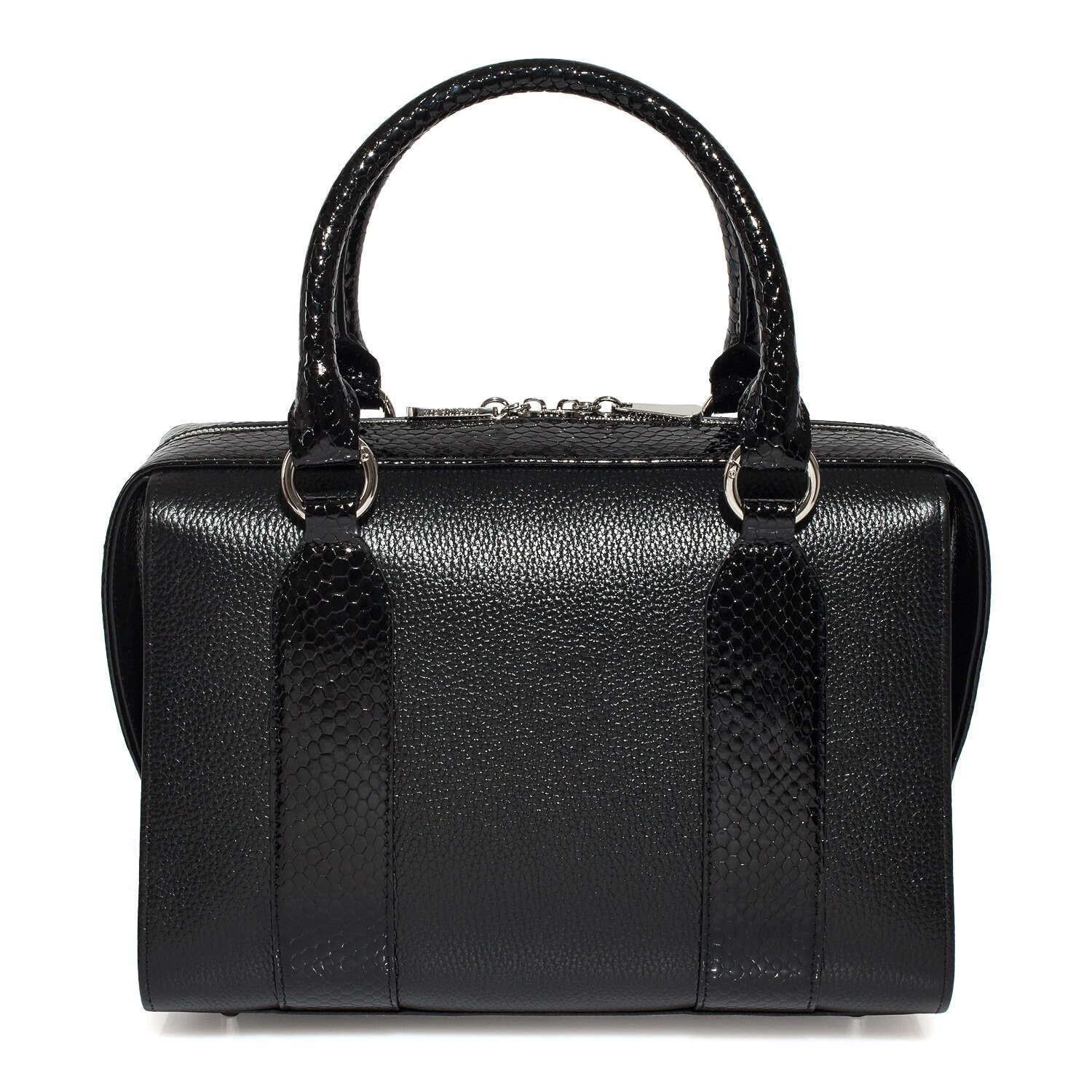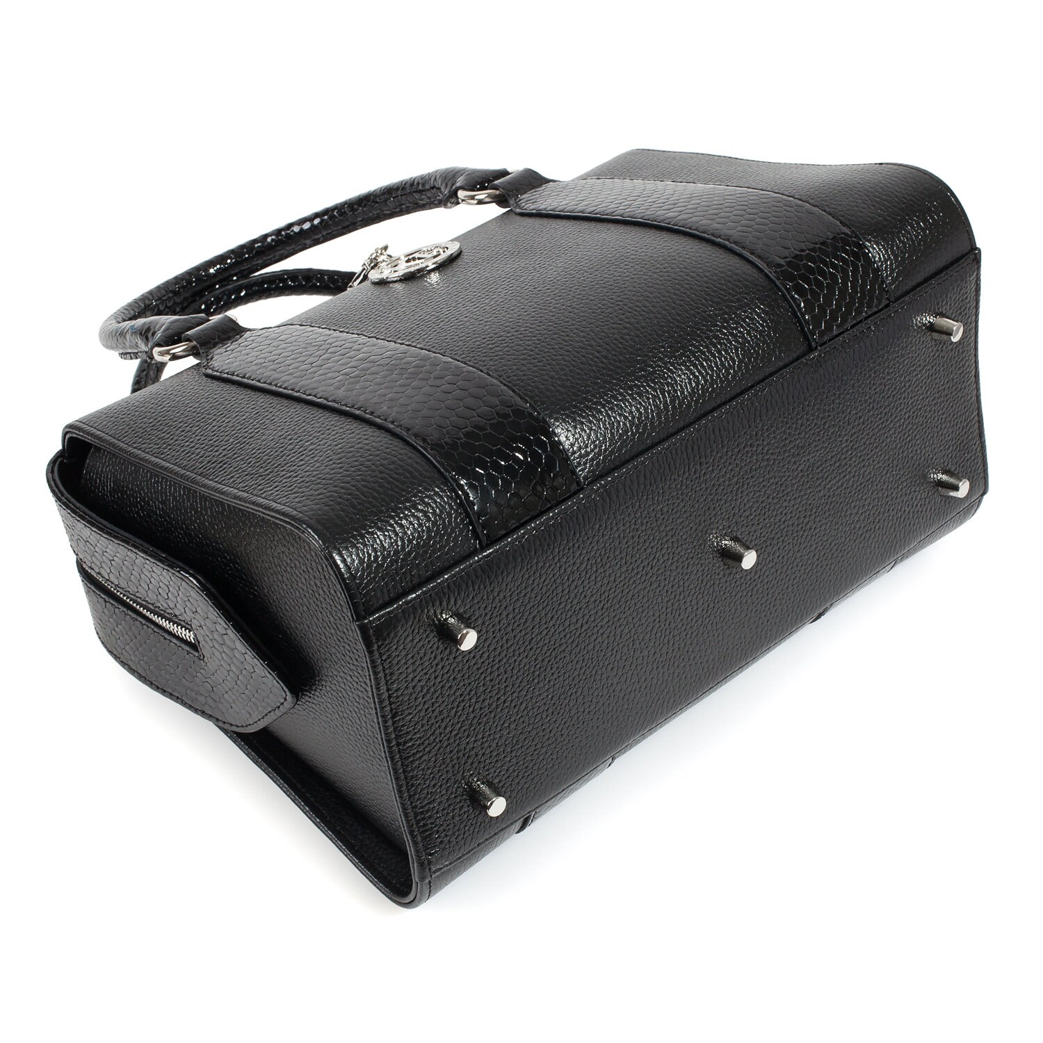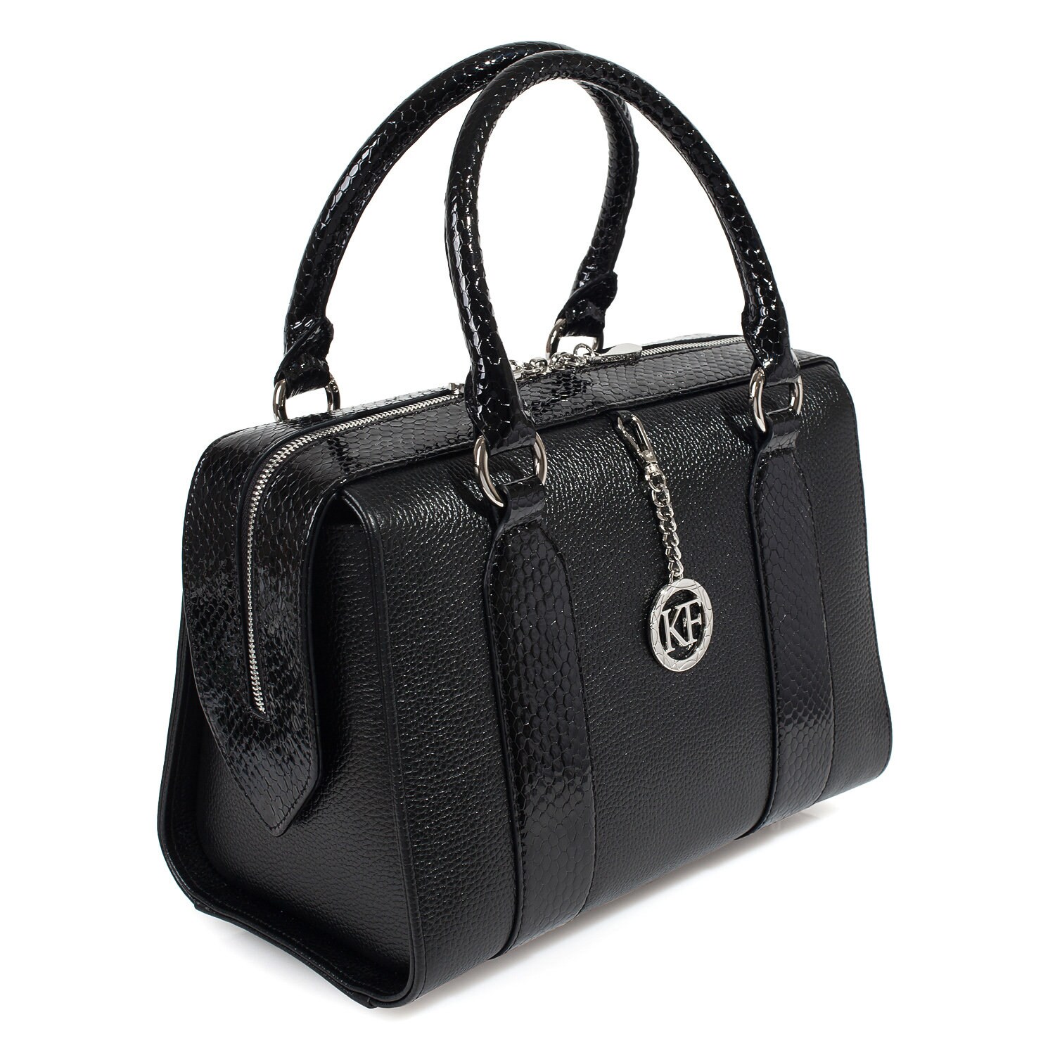 Black genuine leather handbag from ukrainian designer Katerina Fox. This model is designed for women who appreciate the sleek design combined with functionality and comfort. High-quality and reliable hardware ensure long service bags.The internal space of a bag is equipped with one spacious compartment and one patch-pocket and one zipper pocket. The bag is closed with a zipper. The bottom of the bag is protected with metal legs. The kit also includes a storage bag.