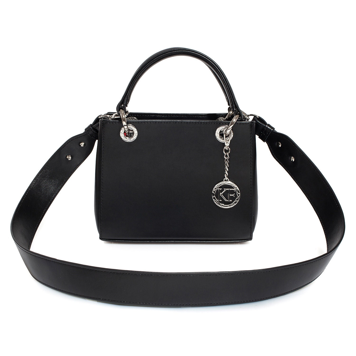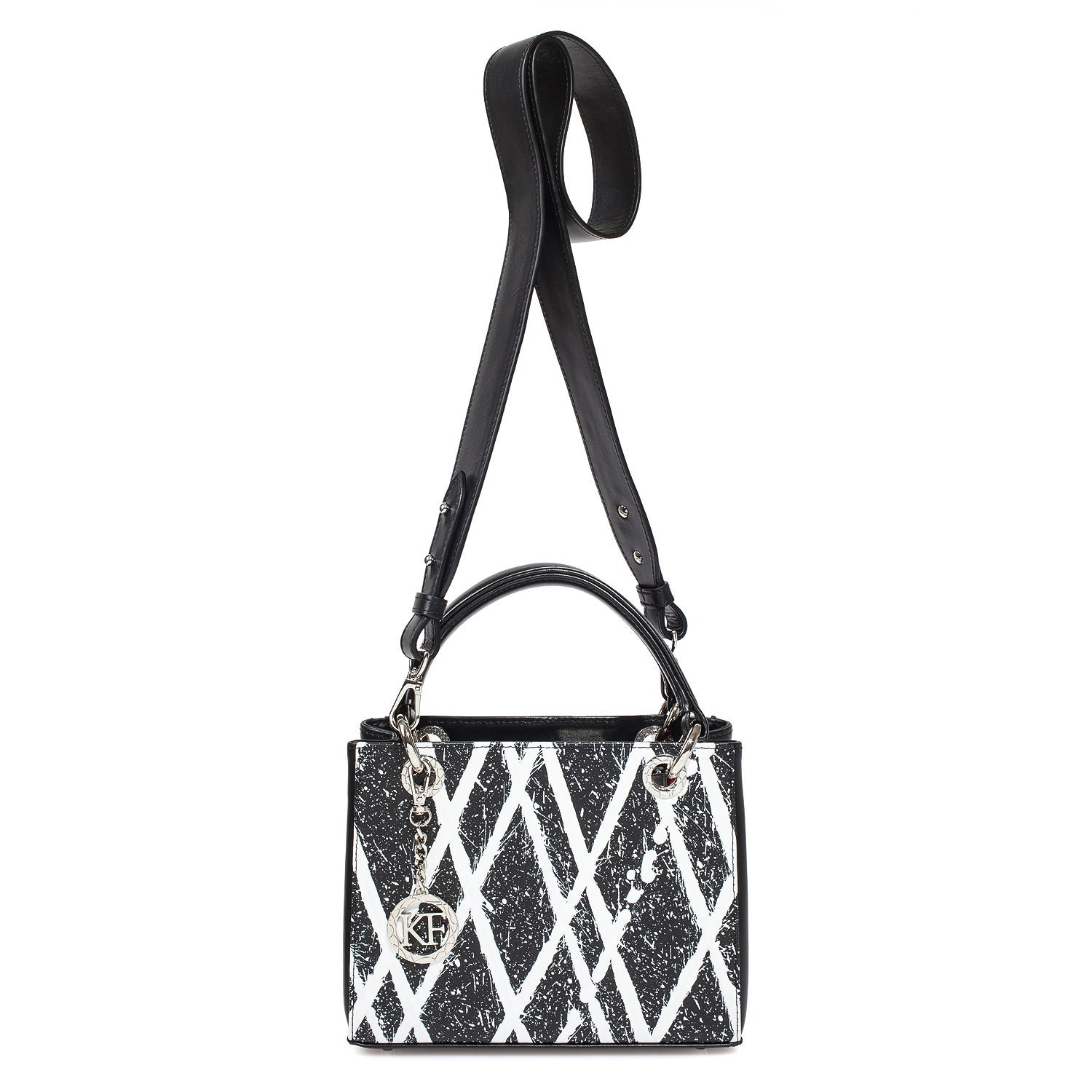 Leather Top Handle Bag, Black-white Leather Handbag Top Handle, Women's Leather Bag KF-3901